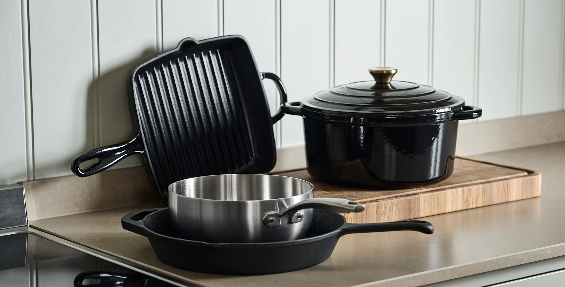 En rejäl och tålig kastrull är ett måste i varje kök, gärna i fler storlekar för att tillgodose olika användningsområden. Några tumregler att utgå ifrån är att välja en variant med tjock botten. Detta för att den ska kunna hålla värmen länge och leda värmen snabbt. När det kommer till material så är rostfritt stål att föredra då det ger en bra stekyta och är enkelt att rengöra. En kastrull i aluminium däremot leder värme bättre. Många varumärken kombinerat dessa två material för att få det bästa av två världar. Hos oss hittar du bland annat Tools-serien från Iittala, Eva Trio-serien från Eva Solo och All Steel från Fiskars.