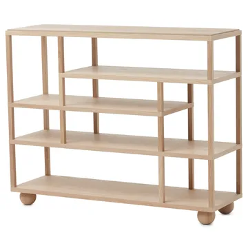 Show hylla från småländska A2 har en luftig och öppen design med omlottliggande hyllplan i flera nivåer. Hyllan är designad av Sara Larsson och står stadigt på fyra klotrunda fötter. Använd den som stilfull rumsavdelare eller som klassisk bokhylla intill en vägg. Kombinera gärna med det matchande bokstödet för en extra snygg display.