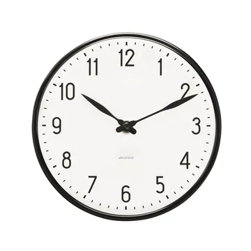 Arne Jacobsen Station klocka från Arne Jacobsen Clocks är en kultklassiker som förvandlar en anonym vit vägg till ett "design statement" på ett kick. En väggklocka som designades 1941 och som 2013 återskapades av Rosendahl med en kantring i stilren svart aluminium. Håll tiden med en klocka som aldrig går ur tiden.
