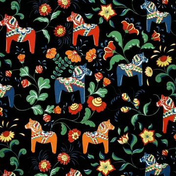 Dalahäst vaxduk från Arvidssons Textil är utsmyckad med kurbitsar och dalahästar som är synonymt med målarkonst och hantverk från Dalarna. Textilvaxduken är tillverkad i akrylbelagd bomull vilket ger en både slitstark och tålig yta som enkelt kan torkas av. Perfekt för dukning både inomhus och utomhus!