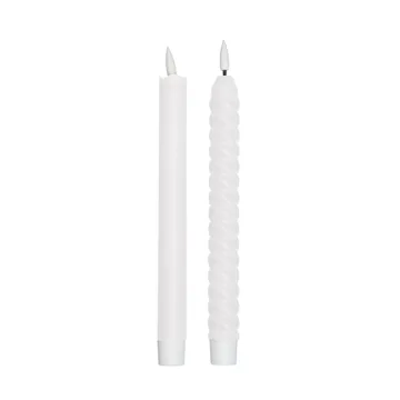 Design Letters LED-ljus 2-pack är tillverkade av vax och polypropen för att efterlikna utseendet på riktiga ljus. De mysiga ljusen kommer i två olika former, ett slätt och ett vridet. En utmärkt presentidé för många tillfällen.