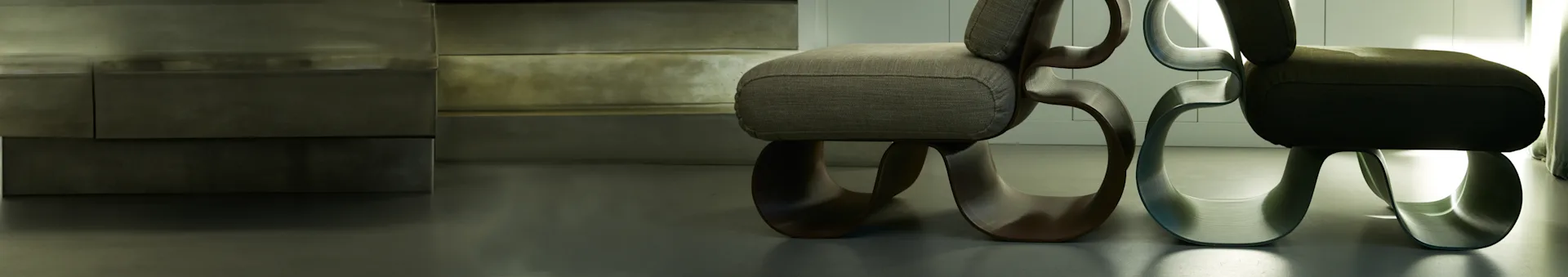 Möbler från Ekbacken Studios är tillverkade av återvunnet material, främst av återvunna fiskenät från Portugal som sedan 3D-printas till möbler med fokus på design och form.