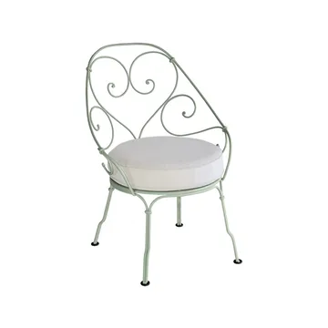 1900 Cabriolet karmstol från Fermob är en elegant utestol med inspiration från sekelskiftets franska trädgårdar. Den handsmidda stålramen med sina sirligt snirklade linjer skapar ett romantiskt uttryck, samtidigt som konstruktionen är robust och anpassad för dagens utomhusmiljöer. Den runda sitsen med avtagbar dyna erbjuder bekväm sittkomfort och gör stolen inbjudande för långa stunder i solen. Ytan är skyddad med Fermobs avancerade lackeringsteknik som motverkar rost och UV-blekning, vilket ger en möbel som håller formen och färgen år efter år. 1900 Cabriolet karmstol från Fermob kombinerar klassisk fransk elegans med modern hållbarhet och kan med fördel matchas med borden i samma serie för en harmonisk uteplats.