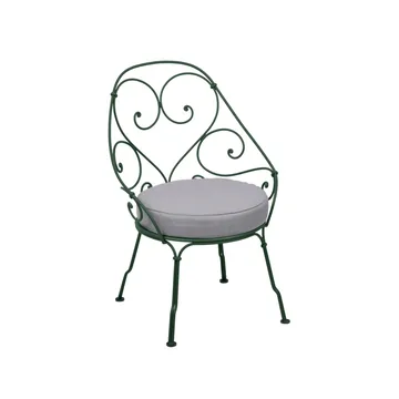 1900 Cabriolet karmstol från Fermob är en elegant utestol med inspiration från sekelskiftets franska trädgårdar. Den handsmidda stålramen med sina sirligt snirklade linjer skapar ett romantiskt uttryck, samtidigt som konstruktionen är robust och anpassad för dagens utomhusmiljöer. Den runda sitsen med avtagbar dyna erbjuder bekväm sittkomfort och gör stolen inbjudande för långa stunder i solen. Ytan är skyddad med Fermobs avancerade lackeringsteknik som motverkar rost och UV-blekning, vilket ger en möbel som håller formen och färgen år efter år. 1900 Cabriolet karmstol från Fermob kombinerar klassisk fransk elegans med modern hållbarhet och kan med fördel matchas med borden i samma serie för en harmonisk uteplats.