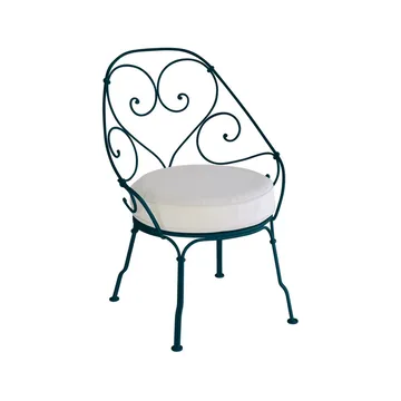 1900 Cabriolet karmstol från Fermob är en elegant utestol med inspiration från sekelskiftets franska trädgårdar. Den handsmidda stålramen med sina sirligt snirklade linjer skapar ett romantiskt uttryck, samtidigt som konstruktionen är robust och anpassad för dagens utomhusmiljöer. Den runda sitsen med avtagbar dyna erbjuder bekväm sittkomfort och gör stolen inbjudande för långa stunder i solen. Ytan är skyddad med Fermobs avancerade lackeringsteknik som motverkar rost och UV-blekning, vilket ger en möbel som håller formen och färgen år efter år. 1900 Cabriolet karmstol från Fermob kombinerar klassisk fransk elegans med modern hållbarhet och kan med fördel matchas med borden i samma serie för en harmonisk uteplats.