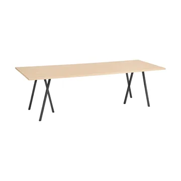 Loop Stand matbord 92,5x250 cm från HAY är designat av Leif Jørgensen. Detta bord har en rektangulär bordsskiva som vilar på karakteristiska trebenade bockar och erbjuder en grafisk estetik. Loop Stand finns i flera storlekar och färger, vilket gör det passande för olika miljöer.
