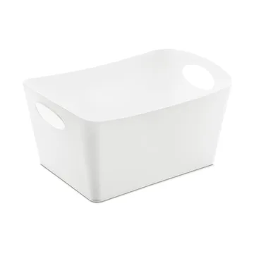 Boxxx förvaringslåda M 3,5 l från tyska Koziol är en rektangulär låda tillverkad i återvunnen plast och cellulosa som bidrar till att spara över två tredjedelar av CO₂ jämfört med nya material. Kan med fördel användas för att samla och sortera allt från underkläder och verktyg till kryddor. Den är även idealisk för platsbesparande förvaring i hyllor och skåp. En miljövänlig och praktisk lösning för hela familjen!