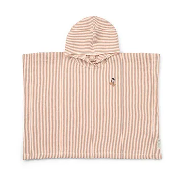 Paco badponcho tuscany rose creme de la creme stripe från Liewood är en mjuk och lätt badponcho i GOTS-certifierad ekologisk bomull med våfflad struktur som torkar snabbt och känns skön mot huden. Den huvförsedda designen med söt bröstbrodyr håller små barn varma efter bad, dusch eller strand. De öppna sidorna gör den enkel att ta på och ger rörelsefrihet. Den absorberande kvaliteten passar perfekt för vardagens vattenlek och packas smidigt i väskan. En funktionell barnponcho som kombinerar genomtänkt design, hållbara material och praktisk komfort.