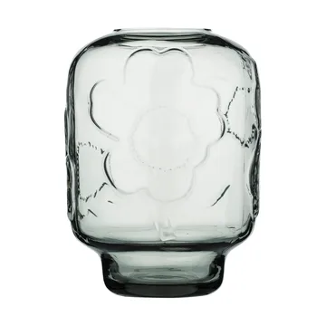 Unikko glasvas från Marimekko är en skulptural vas i klart, munblåst glas med det ikoniska, präglade Unikko-mönstret. Den tidlösa formen lyfter allt från enstaka kvistar till fylliga buketter och blir en elegant detalj på bord, fönsterbräda eller hylla. Design av Sami Ruotsalainen framhäver hantverket där små variationer vittnar om äkta glasblåsning i form. Handdisk bevarar glans och struktur. Levereras i presentask med Marimekkos logomönster. En dekorativ glasvas som förenar nordisk design, kvalitet och funktion i hemmet.