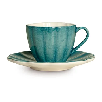 Oyster kopp med fat 25 cl från Mateus adderar en charmig och rustik känsla till din dukning. De böljande formerna på koppen och fatet är inspirerade av musslor, ostron och havets vågor. Kombinera gärna med övriga produkter ur Mateus Oyster-serie.