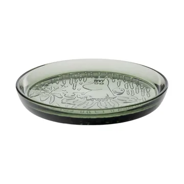 Mumin tallrik Ø15,5 cm från Moomin Arabia är tillverkad i glas och inspirerad av Tove Janssons roman "Trollkarlens hatt". Tallriken är rikt detaljerad och fångar den magiska stämningen i Mumindalen, där Muminfamiljen leker kurragömma. Perfekt för att addera en dos lekfullhet och Muminmagi till din dukning.