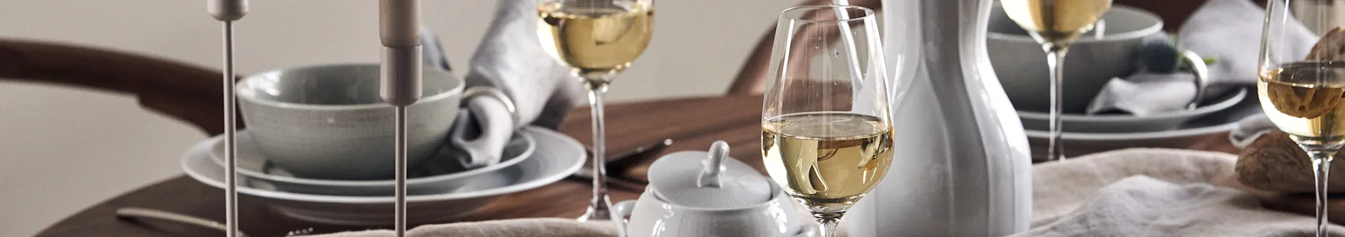 Den skandinaviska stilen passar perfekt på ett dukat bord under en middag för två, likväl som till stunder med alla personer du tycker om. Glasens rena linjer och rundade kupa ger ett diskret komplement till stunden, där drycken får synas och ta plats på andra sidan glaset.