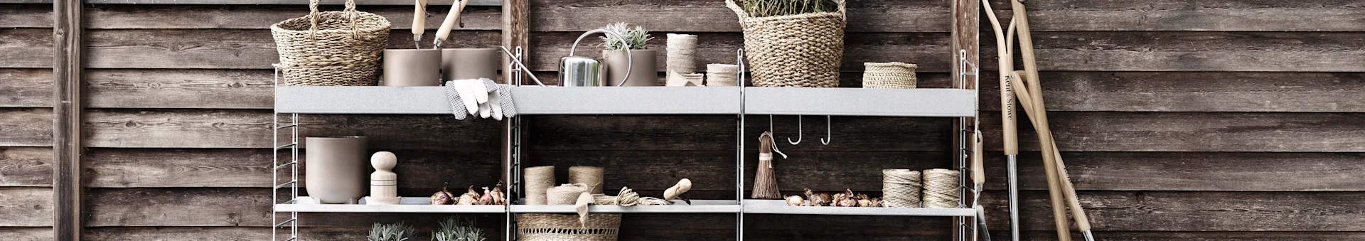 String Outdoor är en innovativ serie utomhusförvaring från det kända varumärket String. Tillverkad i galvaniserat stål för att stå emot väder och vind, erbjuder String Outdoor en helt ny dimension av trädgårdsförvaring. Denna serie är perfekt för att skapa ordning och reda i din trädgård, på altanen eller balkongen. Produkterna i serien inkluderar gavlar, hyllplan och tillbehör som är utformade för att vara både praktiska och stilfulla. Med String Outdoor kan du skapa en personlig prägel på din utomhusmiljö genom att kombinera funktionell förvaring med dekorativa element. Serien är idealisk för allt från att förvara trädgårdsredskap till att skapa en attraktiv display av växter och trädgårdsdekorationer.