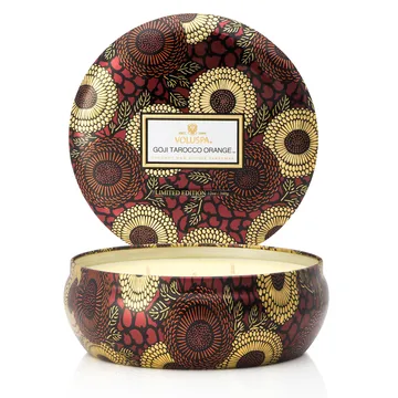 Doftljusen från Voluspa är främst kända för sin långa brinntid och för de sofistikerade dofterna som sprider värme, väldoft och skapar minnen. Voluspa gör helt enkelt doftljus av allra bästa kvalitet. 3-wick in a tin är precis som namnet antyder en vackert mönstrad plåtburk fylld med parfymerat kokosvax och tre stycken vekar. Ljuset har en brinntid på 40 timmar och när det är nerbrunnet kan du återanvända den fina förpackningen som förvaring till smycken och andra småsaker. Ett exklusivt doftljus att unna sig själv eller ge bort till någon du tycker om!