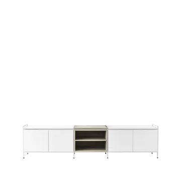 Molto Low sideboard från Zweed, designat av Håkan Johansson, är ett versatilt och byggbart möbelsystem som erbjuder en enkel montering. Med en stabil metallkonstruktion och många modulalternativ kan du anpassa din lösning för olika rum. Systemet använder få komponenter och erbjuder val som skåp, lådor och hyllor, samt möjligheten att välja material som MDF, ek och Carrera-marmor. Möjligheterna är omfattande för att passa både små och stora utrymmen.